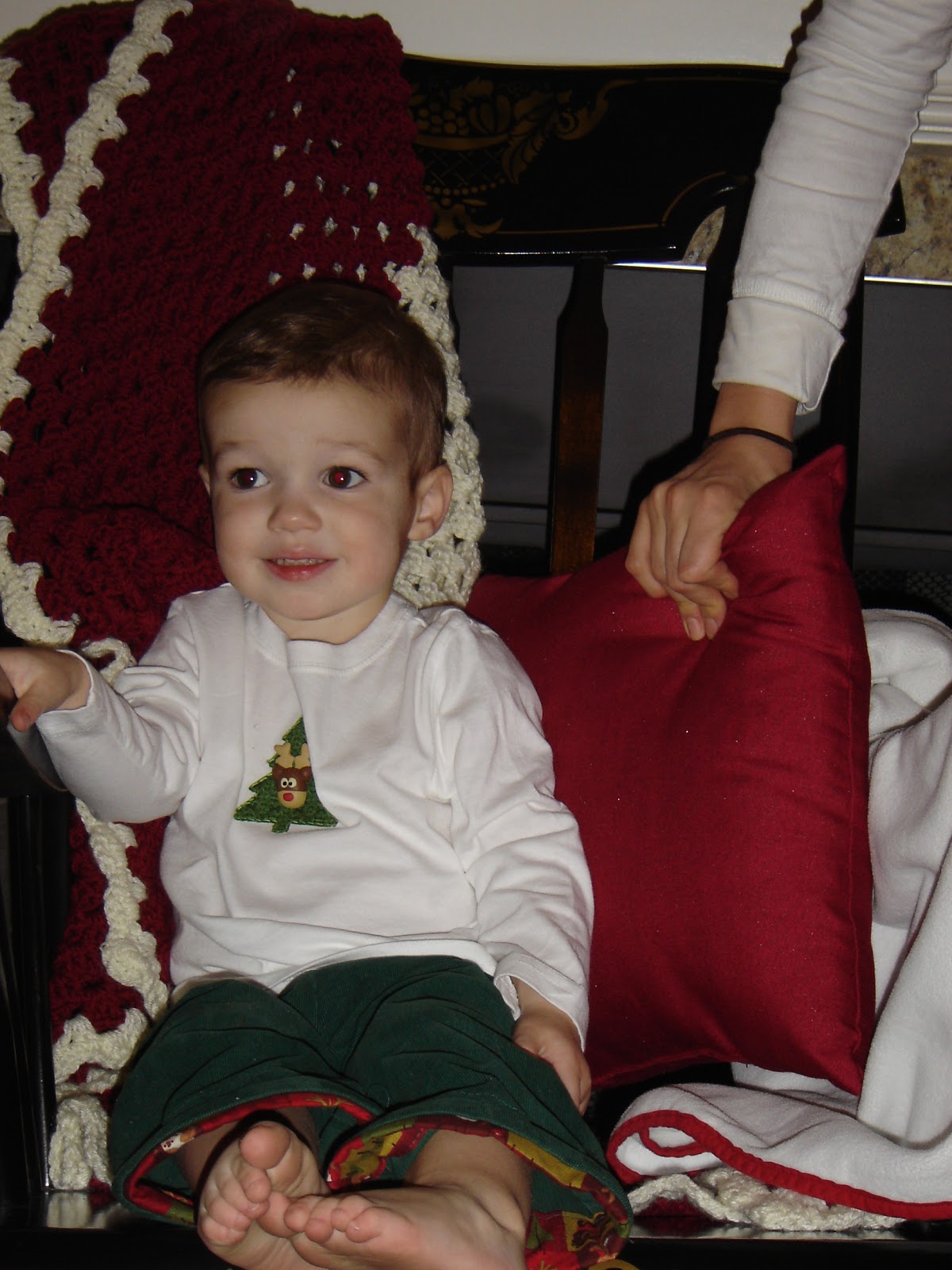We did have Thanksgiving in Nashville Thanksgiving night; I just have no pictures to show of it. Then we went to Huntsville and got to spend some time with David's extended family. The pictures below look like we already had Christmas, but Aunt Paula made the boys matching outfits, so we had a photo shoot. I know there are a lot of pictures, but I thought they were funny!